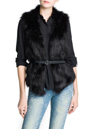 Gilet Fourrure Artificielle Sans Manches Avec Ceinture