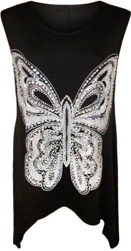 PaperMoon - Top Longue Papillon Brillant Sans Manches - Hauts - Femme - Noir - 50-52