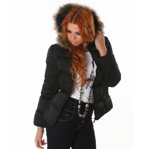 Superbe blouson matelassé noir avec capuche noir 32/34 (3D087)