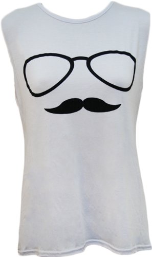Papermoon - Débardeur avec les images d'une moustache et les lunettes - Hauts - Femmes - Blanc - 40-42
